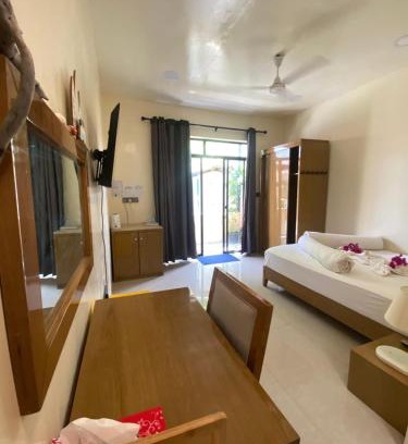 Offering an open-air bath, Maavaharu Guest House Himmafushi offers accommodations in Himmafushi. The air-conditioned accommodation is a 5-minute walk from Himmafushi Beach. There's an outdoor fireplace and guests can use free Wifi and free private parking. A private entrance leads guests into the guest house, where they can enjoy some fruit. The guest house offers bed linen, towels, and ironing service. Guests at the guest house can enjoy an American breakfast, and breakfast in the room is also available. There is a coffee shop, and a grocery delivery service, a mini-market, and packed lunches are also available upon request. You can play darts at Maavaharu Guest House Himmafushi, and free use of bicycles is available. Outdoor play equipment is also available at the accommodation, while guests can also relax in the garden.