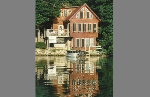 The 'Boathouse' doesn't shelter watercraft anymore, but it does provide a wonderful home on the shore of 3000 acre Lake Kegonsa. It is located at Crown Point Resort in a country setting, but is only 15 minutes from downtown Madison Wisconsin, 20 minutes from the airport, and 2 hours from Chicago's O'Hare airport. Lake Kegonsa (lake of many fishes) is one of the four large lakes starting in Madison and is generally unknown and uncrowded. It is only rented by the week, Sat-Sat from Mid June to mid August. 3 nights min on holidays. There are a lot of stairs down to the cedar sided Boathouse is at water's edge, three levels of spectacular, never ending views. We recommend packing in small duffels. The top level has the master bedroom, queen bed,2 twin beds, and a full bathroom. Walking by the Weber charcoal grill and crossing the deck takes you into the middle level, with living and dining areas,a gas fireplace, washer/dryer,full bathroom, and a well stocked kitchen. Plenty of pots and pans, dishware, dishwasher, micro, coffeepot, etc. The bottom or lake level has one bedroom with two twin beds, and another bedroom with a queen bed, and a full bathroom. All levels have great sunrise views over the lake .There is a flat screen tv in the living area and 2 smaller ones in the bedrooms. WiFi is free.Central air and heat throughout. No pets are allowed.Located at rated #1 Crown Point Resort, the Boathouse also has the VRBO highest rating.