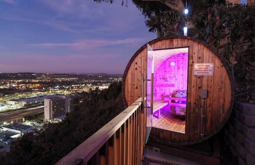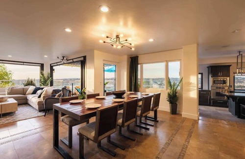 Perched above San Diego, this modern villa offers breathtaking city views and endless entertainment. Watch sunsets from the infinity pool, challenge friends in the game room with pool and ping-pong, or unwind in the sauna. The thoughtfully designed spaces include expansive outdoor living areas, a gourmet kitchen with wine storage, and serene bedrooms with panoramic views. Perfect for group getaways, this hillside retreat combines luxury living with playful touches, just minutes from downtown.