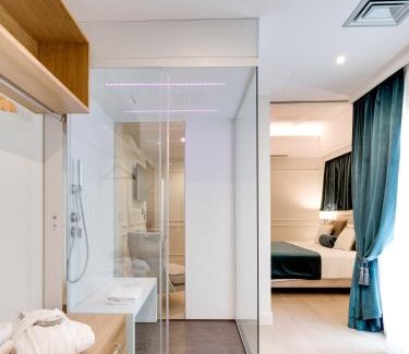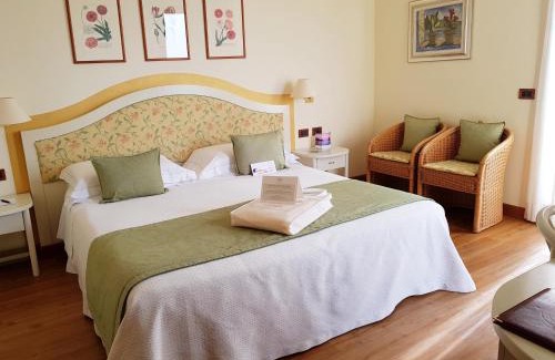 Only 1.2 mi from Lake Garda, Madrigale Panoramic Lifestyle & Soulful Hotel offers 2 swimming pools and lake views from its hilltop position in Marciaga. Cà degli Ulivi Golf Course is opposite the hotel. The 4-star superior hotel features air-conditioned rooms with satellite TV, a mini-bar and balcony. Most of them offer lake view and some have a spa bath. Madrigale Panoramic Lifestyle & Soulful Hotel. The poolside restaurant is open for lunch, while the main restaurant serves buffet breakfasts and dinners à la carte. You can relax in the first pool (heated in spring and autumn) with hydromassage features or in the large lake-view located in the garden. The hotel features a wellness center, , Turkish bath, experiential showers, whirlpool tub, ice waterfall and relax area with stunning lake view. It's paid and available upon request