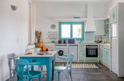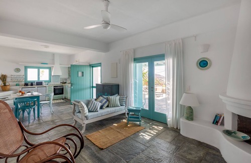 This 94sq.m .unique luxury villa is part of Magganari View Village . This retreat,which accommodates up to 5 persons , enjoys unobstructed majestic sea views of Magganari Bay and the island of Santorini. It is located within walking distance from three exquisite sandy beaches with crystal clear turquoise waters.There is daily cleaning service and change of linen twice a week .There are 3 taverns at the beach open from early morning to night.