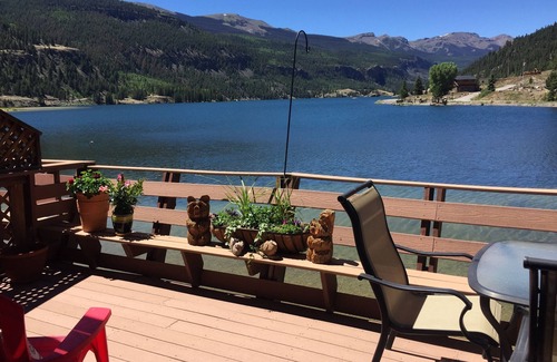Location, Location, Location! Many people feel this property is similar to being on a houseboat. The spacious deck is directly over the water of Lake San Cristobal. You can hear the lapping of waves as you read or eat on the lovely front deck. The majestic mountains surrounding the lake are green in summer, aspen covered in fall, and snow covered in winter.