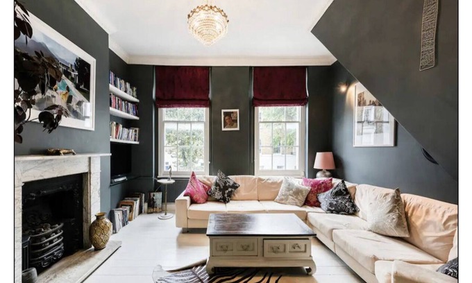Curl up with a book in front of the fireplace in this airy Georgian maisonette. This beautifully designed, eclectic slice of haut bohemia is filled with modern art and music photography, and is surrounded by a serenity seldom found in Central London.