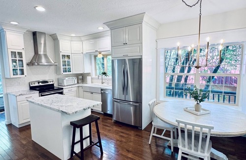 Surrounded by lush, mature trees and breathtaking mountain views, our cabin is a haven of tranquility. The exterior boasts a classic aesthetic, with a spacious wraparound deck perfect for sipping morning coffee or unwinding with a glass of wine as the sun sets over the peaks. Inside, you’ll find a beautifully appointed interior featuring a stone fireplace, plush furnishings, and large windows that flood the space with natural light and frame the stunning landscape. The fully equipped kitchen, complete with modern appliances, makes meal prep a breeze, while the cozy bedrooms ensure restful nights after a day on the course or exploring nearby trails.