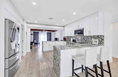 Nestled in Hollywood, our delightful home offers 3 bedrooms and 3 bathrooms on a beautiful ocean access lake. Close to everything, Hard Rock Stadium, Beaches, Airports. Book this place for the ultimate unwinding and relaxation. Watch the birds walk by on the backyard, or the fish jump from the water, go fish, or kayak, or just simply relax by the pool in the afternoon sun. The choice is yours. Kickback, relax, and enjoy everything Hollywood and our adorable house has to offer. Don't forget to try Le Tub, the city's well kept secret burger joint, or take a stroll on the Broadwalk on Hollywood Beach. Concerts, shopping, fun, nightlife, adventure, museums, sandy beaches just minutes away. Great for corporate getaways too, as our split floorplan has 3 separate bedrooms with everyone’s own bathroom. This is a great way to share space with family, friends or co-workers. Complimentary welcome snacks, bottled water and coffee for all of our guests :)