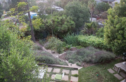 Access to the garden is through the second bedroom. There are two patio areas to take in our perfect weather and gorgeous views. Depending on the time of year, the vegetable beds are growing kale, swiss chard, tomatoes, artichokes, fava beans, and wildflowers. The beautifully landscaped backyard is bursting with color and includes lavender, succulents, grapevine, and California Native flowers.