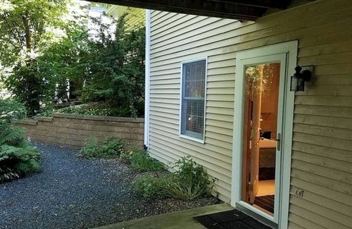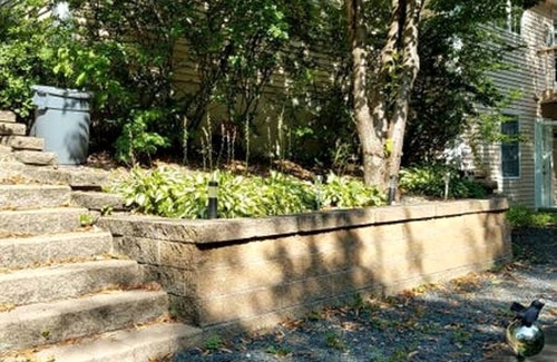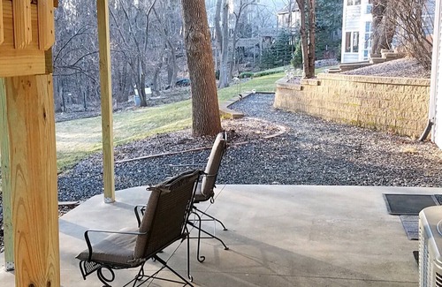 We are located about 1-1.5 miles west of Mayo Clinic. You'll find us located in a beautiful, quiet and secluded neighborhood. We have a private entrance, a staircase and path to your lovely hideaway. The wooded area behind our home has lots of wildlife. It is not uncommon to see deer in the backyard, as many as six at one time! Sometimes a group of turkeys will feed under our deck, you can watch them just outside the windows of your studio apartment. We are often told of how beautiful and peaceful it is here. There is a covered patio and furniture to relax on in the evenings.