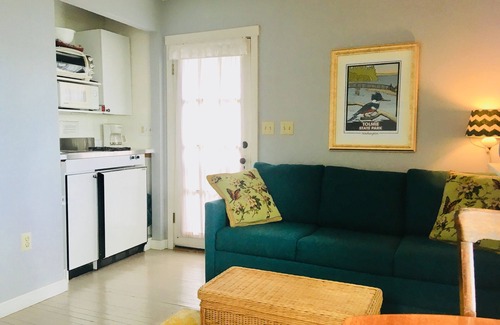 Note: Beautiful views from cottage interior and exterior sitting areas. Beach and kayaks are accessed by a trail to shoreline 60 ft. below. Washer and dryer available on site in host's home.