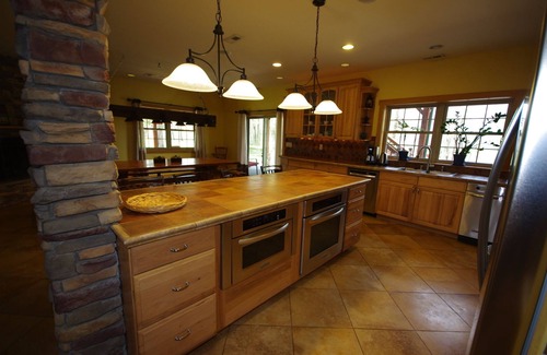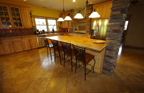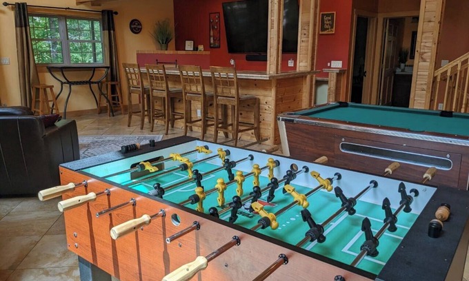 Devil’s Lodge is one of a kind, beautifully crafted vacation home situated on 3 park-like acres, with large playset and play area. It offers all modern luxuries packaged in lovable style, imported stone floors, high ceilings and stunning mix of wood, stone and tile finishes. With almost 4,000 square feet of all-above-grade interior space, 3 common areas, 5 bedrooms and 4 bathrooms, Devil’s Lodge is perfect for family reunions, friends getaways and business trips. The Lodge is very comfortable year round, with central air and 2 indoor and 1 outdoor fireplace. Sleep well in 5 king size pillow top beds. Master bedroom also has 2 twin over full bunk beds - perfect space for kids in your group!