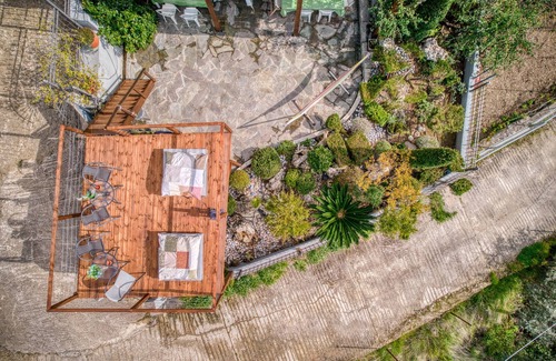 Our space has a rock garden and a courtyard in front of the 2 studios with sea and mountain view, with tables and comfortable chairs for eating, working and whatever the visitors want