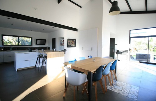 Village of Serviers-et-Labaume, in a quiet environment, this 160 m2 holiday home, in a resolutely contemporary style, has 3 bedrooms, one with a dressing room and a private bathroom.
