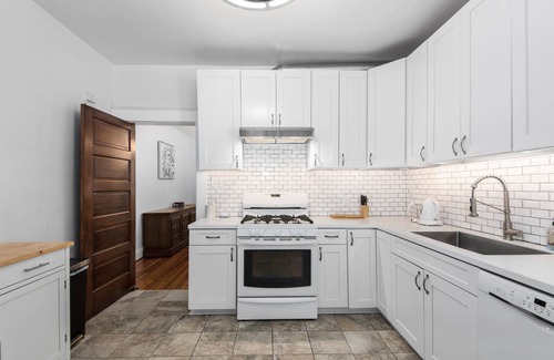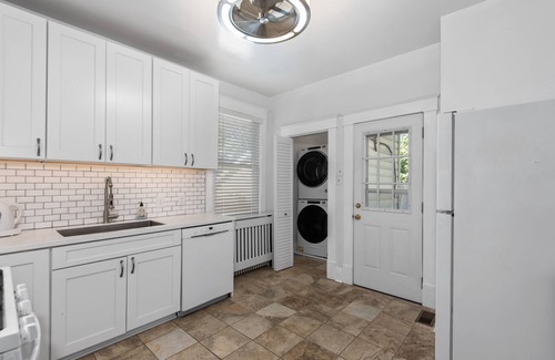 The recently renovated property has an open modern Victorian interior design. The kitchen and the bathroom have been updated with new appliances and a modern look and feel. It is cool in summer and cozy in the Winter. Both porches and the back garden area are for guests. There are several parking spaces in the long driveway as well as off-street parking.