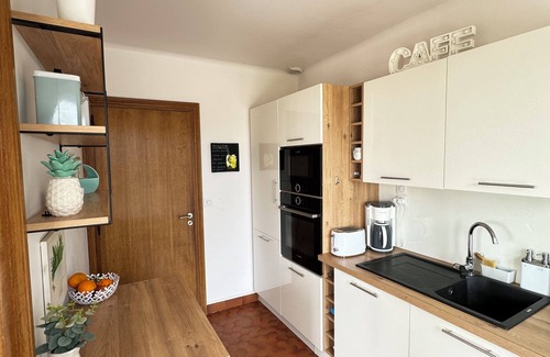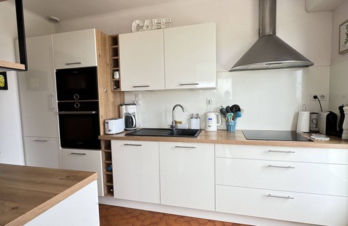 - A fully equipped kitchen (ceramic hob, dishwasher, fridge freezer, microwave, toaster, coffee machine, Nespresso espresso machine),