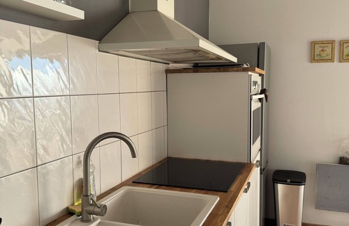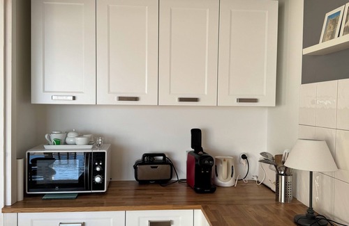 The American kitchen is very well equipped, fridge-freezer, dishwasher, pyrolysis oven, microwave, washing machine 6kg, thanks to its double worktop, it allows you to have an aperitif or breakfast in a friendly atmosphere.