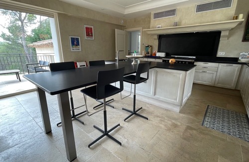 The large kitchen is beautifully equipped, adding to a wonderful and welcoming atmosphere. A true gem, this gorgeous villa is a luxury retreat - within easy reach of all the delights of the French Riviera, and of course, the airport.