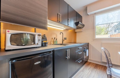 A living room and a desk are featured at this 2-bedroom, 1-bathroom rental. Connect to the free WiFi, or get cozy in front of the cable/satellite TV. Bathroom amenities include a hair dryer and towels. The kitchen is equipped with an oven, a refrigerator, and a dishwasher, as well as a coffee maker, a microwave, and cookware. And because there's access to laundry facilities, you can go a bit lighter on your packing. Other amenities include bed sheets, an ironing board, heating, and a dining table.