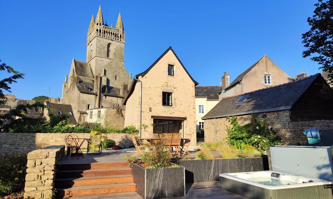 Magnificent house of character dating from the 15th century, completely renovated with a decoration mixing Art Deco, flea market touches, art ceramics, vintage. All this in a quest for a change of scenery in space and time! Also, you will benefit from the rich historical, artistic and cultural heritage of Quimperlé and shine on southern Brittany. Quimperlé is located on the pilgrims' route to Compostela. In the heart of the historic city, a dazzling park awaits you: no fewer than 4 bell towers to discover, half-century-old cherry trees, rose gardens. Accommodation classified 5 stars Ministry of Tourism. A welcome gift awaits you in our wine cellar, located on the old passage between upper town and lower town with its paving dating from the Middle Ages.