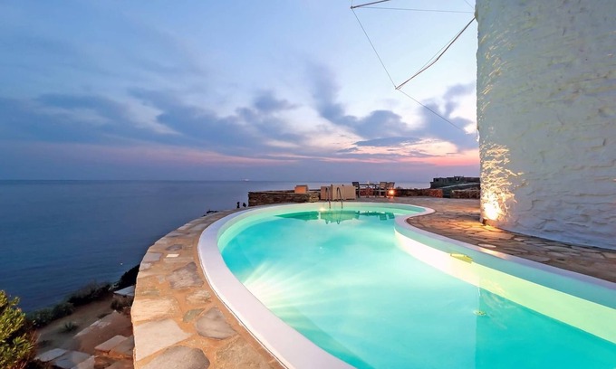 Experience the ultimate holiday at Villa Faros, a breathtaking terraced property nestled above the crystal-clear waters of Koundouros in southern Cyclades Island Kea. Villa Faros boasts a beautifully restored windmill, charming guest houses, and a stunning private pool that combine to offer unparalleled comfort, charm, and relaxation.