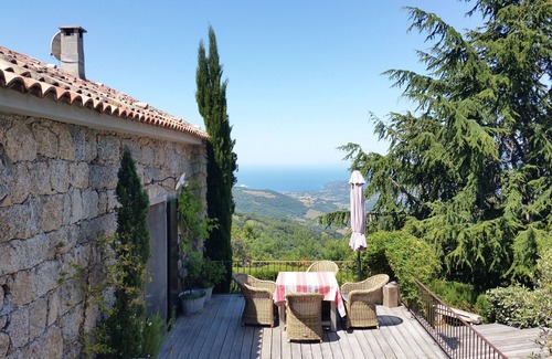 This fully renovated, air-conditioned sheepfold includes: a fully equipped kitchen open to a superb living room opening onto a terrace where you can enjoy, in the tranquility of a landscaped garden, the view of the Gulf of Valinco and the surrounding mountains.