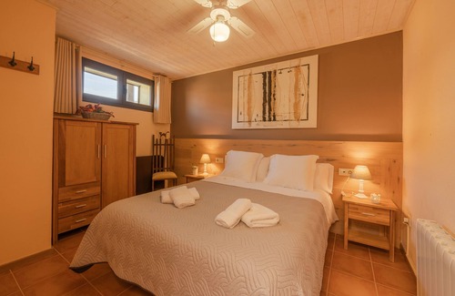 On the second floor of the Casa Rural El Pi is where we find the 3 bedrooms, two double and one with two single beds. In one of the double beds an extra bed can be placed. There is also a sitting room equipped with armchairs overlooking the garden and the pool, and another bathroom with shower. The house has free WIFI and heating.