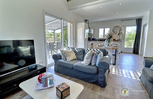 The villa of oaks is a new villa, independent, of 140 m ², without opposite, outside any housing estate, in 10 min in feet of the town center of Aubenas but located in full nature. This villa, facing south, benefits from high quality services with an independent and private ground of more than 2000 m ² with big trampoline, swings, toboggan. It is fully air conditioned and has unlimited internet access.