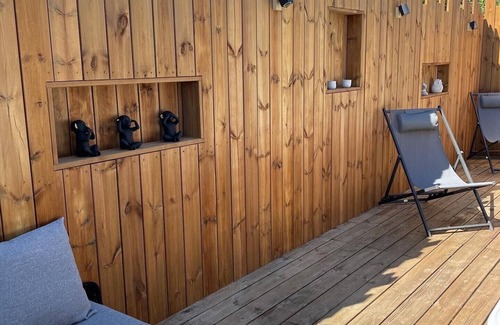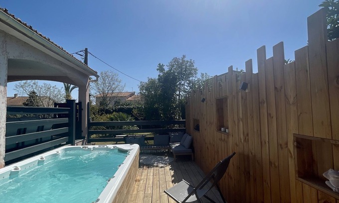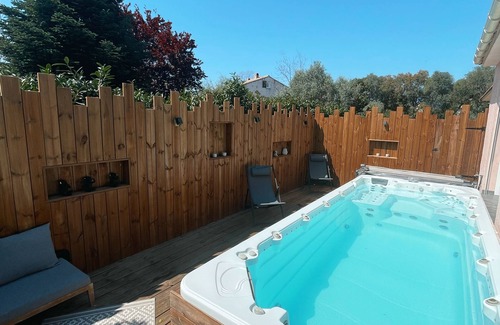 3 air-conditioned double bedrooms equipped with 160x200 beds, cupboards, connected TV including a parental suite of more than 20m² with bathroom including balneo bath, Italian shower, hair dryer and toilet opening directly onto the covered terrace and the swim spa (swimming pool )