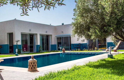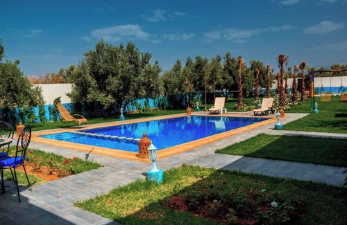 Located in Ghmate, this 4-bedroom, 5-bathroom villa lets you experience it all. Fans of nature and the outdoors will love being 55 minutes by car from Lalla Takerkoust Lake and 10 minutes from Ourika Valley. If you'd like to explore the area, you can make the 16-minute drive to Aqua Fun Club or the 26-minute drive to La Plage Rouge Swimming Pool.