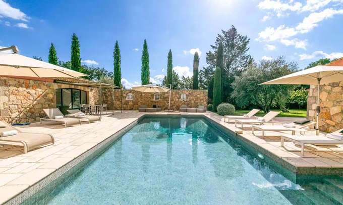 Best-rates for the Magnificent Villa near Fayence starts from $761 per night with includes Pet Friendly, Pool, TV, Private Pool, Balcony/Terrace, Guest Services, Parking, View, Ocean View, Sports/Activities, Bedding/Linens, Wellness Facilities, Barbecue/Outdoor Cooking, Laundry, Air Conditioner, Fireplace/Heating, Child Friendly, Kitchen, Security/Safety, Internet with all other amenities. Perfect for Weddings is committed to ensuring every guest experiences a comfortable and extraordinary stay, whether planning a romantic getaway, a honeymoon, a pet-friendly stay, or celebrating with the entire wedding party.