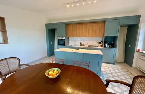 Large apartment (on two floors): three double bedrooms, one single, one triple with a bunk bed and three bathrooms. Large terrace overlooking the sea with table and chairs to eat while looking at the view, cool verandas and large garden with rocks and Mediterranean vegetation. Spacious and welcoming common areas with large living room. Large dining / kitchen room with modern island in the middle. Spaces behind for warehouse / laundry. All fully equipped with 2 refrigerators, washing machine and dishwasher. Fully furnished house and 2 wi-fi.