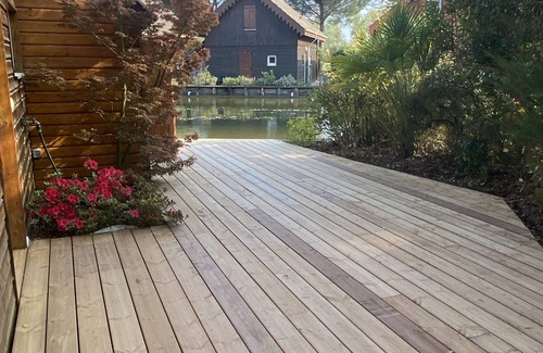 Magnificent waterfront wooden chalet 100m from Lac d'Hourtin, 15 km from the ocean. | Ski Chalet in Hourtin