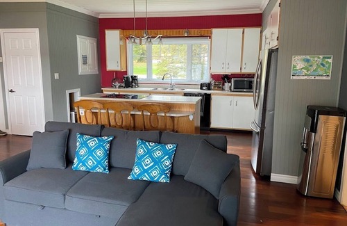Magnificient cottage for rent right on the water. Relax with the whole family at the spa, go for kayak and pedal boat excursions or simply enjoy yourself in the backyard with a lot of fun outdoor games. Well located near the ATV and snomobile trails, the lake is also navigable so why not bring you own boat and enjoy beautiful sunny days on the water. Less than 30 minutes from the mountains for hiking, biking, skiing, and much more!