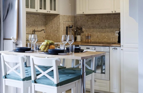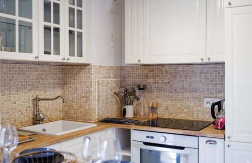 The kitchenette is equipped with an oven, a stovetop, and a refrigerator, as well as a coffee maker, an electric kettle, and cookware. Bathroom amenities include a hair dryer, towels, and toilet paper. And thanks to the washer and dryer, you'll even be able to travel light. Other amenities include bed sheets, an ironing board, and heating.