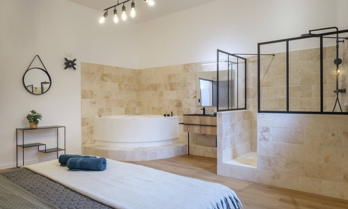 Best-rates for the Bastide apartment starts from $266 per night with includes Kitchen, Designated Smoking Area, Wellness Facilities, Fireplace/Heating, Guest Services, Internet, Laundry, TV, Bedding/Linens, Child Friendly, Hot Tub with all other amenities. Perfect for Weddings is committed to ensuring every guest experiences a comfortable and extraordinary stay, whether planning a romantic getaway, a honeymoon, a pet-friendly stay, or celebrating with the entire wedding party.