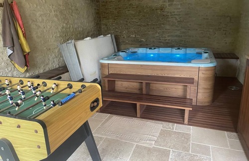 Relax in the hot tub (enjoy the outdoor furniture!) or sip a drink in the garden of this vacation home. As for the great indoors, you can come inside and enjoy the free WiFi and foosball.