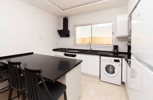 Nestled in Aghir, this 3-bedroom, 2-bathroom villa brings it all within your reach. Fans of nature and the outdoors will love being 12 minutes by car from Playa Sidi Mehrez and 40 minutes from Oamarit Beach. If you'd like to explore the area, you can make the 23-minute drive to Houmt Souq Harbour or the 12-minute drive to Djerba Explore Park.