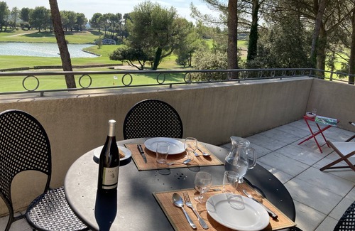 At the gates of the Luberon, breathtaking southern view on 5 golf greens, 3 lakes and the Alpilles mountain range on the horizon. In the heart of a fragrant pine forest, in a secure residence with a large heated overflowing pool of 6°C, restaurant open all year round, walks along the canal or in the Vaucluse mountains. Close to L'Isle sur la Sorgue called the "Venise Provençale" and to the crystal water resurgence of Fontaine de Vaucluse.