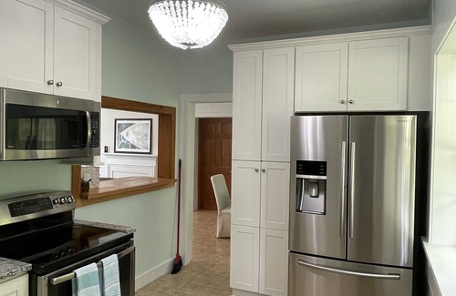 This newly renovated home boasts a well appointed kitchen with new cabinets, granite countertops, and brand new appliances.