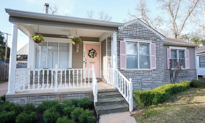 Welcome to Magnolia Cottage, a charming 3BR, 2BA getaway in the heart of Shreveport! Sleeps 9 with a king suite, queen room, and full-over-queen bunk. The sunroom has a pullout couch for extra space. Enjoy a fully stocked kitchen, smart TVs, and a washer/dryer. Relax on the new back deck with a fire pit and grill or sip coffee on the front porch. Walk to a nearby park or explore top attractions just minutes away. Book now for a cozy and convenient stay!