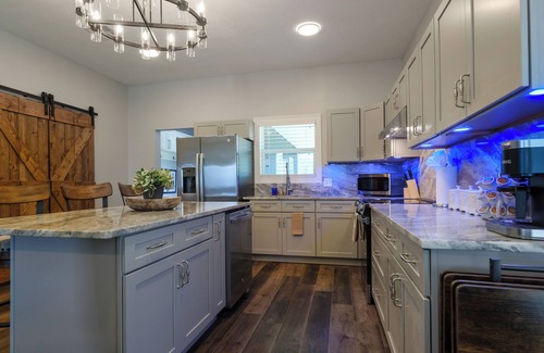Enjoy casual fishing or quiet reflection by the stocked pond, located right on the property. Start your mornings on the patio with fresh coffee and scenic views. Inside, you'll find a complete kitchen, comfortable bedrooms, and everything needed to feel at home. The game room/workspace features a PlayStation 5, ideal for both productivity and play. TVs in all bedrooms let guests unwind with entertainment tailored to their own space. Fire up the BBQ pellet grill for delicious outdoor meals under the stars.