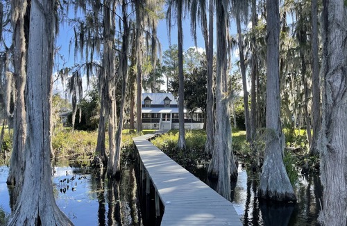 Magnolia Pointe is a beautiful LAKEFRONT cottage on Lake Santa Fe in Melrose, FL. Lake Santa Fe is a 5,850 acre lake in central Florida that boasts some of the most beautiful lake shoreline Florida has to offer. The lake is a fisherman’s paradise but also the outdoor enthusiast’s dream! Our home is west facing so you will enjoy night after night of picture perfect sunsets framed by Magnolia trees as you look out to the Bald Cypress tree lined waters. You can enjoy the sunsets from the screened in porch as well as enjoy a cocktail while sitting on the boat dock as the sun sets.