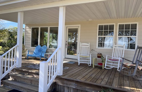 Imagine sitting out under the covered porch and rocking throughout the day and evening watching the boats and ships go by with a an amazing sunset. There is an octangular lower deck if you prefer to stay home and sunbathe. If you are a sports enthusiast you will love clamming, fishing and flounder gigging with water access only a few steps away (water shoes a must). There is a public water access as well only a short 3 minute walk. Message me for details. Be sure to check out dockshare.app for a reservable dock option in the canal that runs only 20 steps from this front door. Message me for details.