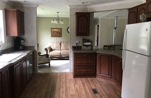 3 bedroom, 2 bath, Large inviting, covered decks that are Wheelchair accessible. Located within 1/2 mile of Alton where you will find fishing, swimming, tubing, kayaking, and canoeing. Come enjoy the great outdoors! FIRE PIT. Please bring your own wood. .NO PETS. SMOKING PERMITTED OUTSIDE ONLY.