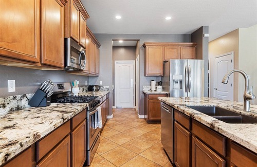 Main Floor King Room plus 4 Bedroom Upstairs w/Game Room & Heated Pool has 5 Bedrooms , 3 Bathrooms, and max occupancy of 10 people. The minimum rental for this property is 1 nights, but this can change depending on the season you plan on staying. Previous guests have given good rated it, and VRBO labeled it a top-rated House because of the excellent services rendered by the owner or manager of this House, and has consistently provided great experiences for their guests. Most families or guests that use it recommend it to their friends and some of them are repeat guests. House has a friendly neighborhood, and the Surprise Farms has interesting places to visit. If you want to learn more about the House in Surprise Farms, such as places to visit and things to do nearby, you can check below to learn more.