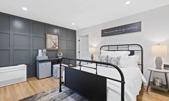 The Avery suite boasts a comfortable queen-size bed as well as a coffee maker, TV, mini-fridge, and complimentary internet access.