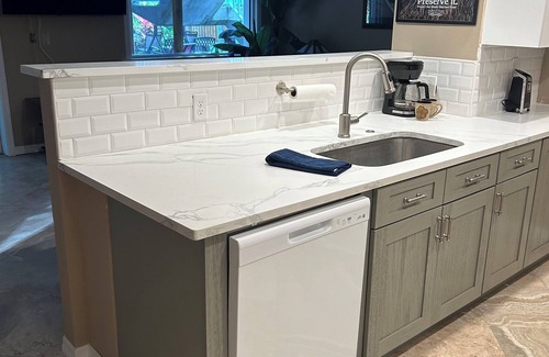 - River home with huge arcade, hot tub kayaks, mini golf and floating pad, 80in TV