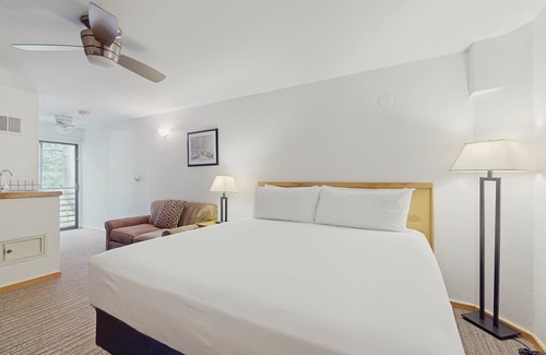 You’ll love the boutique Aspen Mountain Lodge - cozy up by the fireplace in the lobby, or enjoy a relaxing dip in the heated pool and hot tub. Early risers will appreciate the continental breakfast, and everyone will enjoy upscale perks like central AC and ski storage.