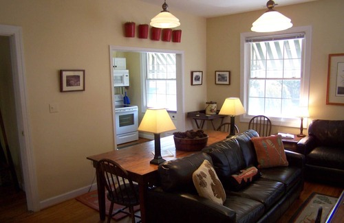 The MAIN STREET APARTMENT includes a large comfortable living area (with pull out queen bed), dining area, a full kitchen with Washer & Dryer, two spacious bedrooms (one with queen bed and the other with two double beds) and a full bath. There is a 60" flat screen TV in the living room with streaming service and excellent WiFi throughout.
