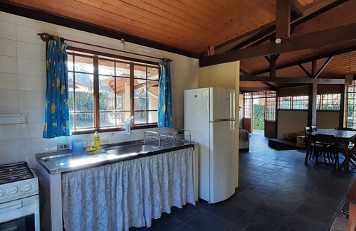 The house is located in Maringá-RJ, on Rua Principal, next to shops (markets, restaurants, beer garden, etc.) with a 100m² lawn (parking for 2 cars and leisure), on the middle floor: 30m² room, fireplace (we do not provide firewood) ), TV29 ', kitchen (stove, refrigerator, sandwich maker and other utensils), 1st floor: 2 bedrooms (one with a double bed and the other with 2 single beds), bathroom, area (with tank), on the 2nd floor: 2 bedrooms (one with a double bed and the other with 2 single beds). Note: We do not provide bed linen and towels.