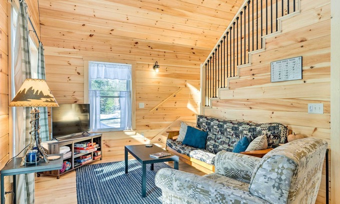 This 2-bedroom, 1-bathroom, Rangeley vacation rental cabin is a year-round home base for exploring Maine’s stunning outdoor spaces! Located just off the shore of Rangeley Lake, 'Balsam' features a Finnish-inspired interior, a spacious covered porch equipped with a gas grill, and a cozy fire pit to ensure lakeside living at its finest. If snow is in the forecast, hit the slopes nearby at Saddleback Mountain! After a day of fun, return home to curl up on the couch with some popcorn and a movie.