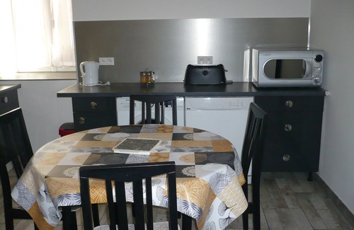 The kitchen is equipped with an oven, a stovetop, and a refrigerator, as well as a coffee maker, an electric kettle, and a microwave. Connect to the free WiFi, or get cozy in front of the TV. And there's access to laundry facilities, so you can even pack a bit lighter. Other amenities at this 3-bedroom, 2-bathroom rental include a living room, bed sheets, an ironing board, and heating.